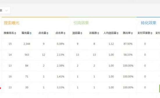 然后我们从单品分析里,也可以看到更具体的PC端,哪些词的曝光量,点击率如何。这里说下,词的匹配度相关性对点击率影响也很大。