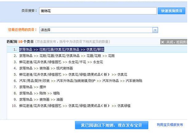 在上传宝贝的时候,我们需要首先选择商品类目,这里是关系到我们产品是否被分配到精准流量的一个选项。同时自然搜索流量也是根据我们自己产品选择的类目推送的。如果选错商品类目,将不会有相应的流量产生。
